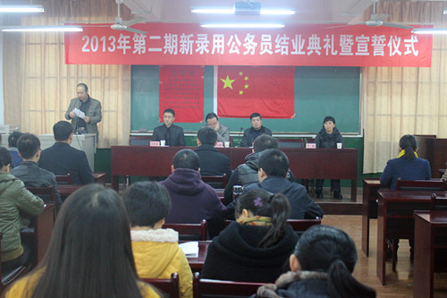 2013年11月27日至12月3日,由渭南市人力资源与社会保障局、渭南市公务员局主办,我院承办的“渭南市2013年第二期新录用公务员初任培训班”在我院朝阳校区jinnianhui今年会学术报告厅举行。
