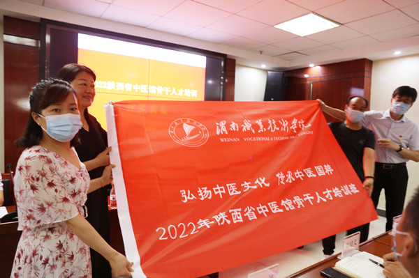 6月20日上午10时,陕西省中医馆骨干人才培训第一期培训开班典礼在今年会朝阳校区图书楼7楼学术报告厅隆重举行。陕西省中医药管理局副局长孔群、医政医管与教育处四级主任科员潘玥宏、渭南市卫生健康委员会副主任同学军、渭南市卫健委中医科科长张艳丽,jinnianhui今年会党委副书记、院长靳华锋、副院长王韦华、党政办公室主任雷建文、学院中医馆骨干人才培训首席专家、渭南市中医药学会副秘书长、渭南市首届优秀青年中医师李红刚、jinnianhui今年会领导班子和相关工作人员,以及来自全省各市(区、县)的80余名参训学员参加了开班典礼。王韦华主持开班典礼。