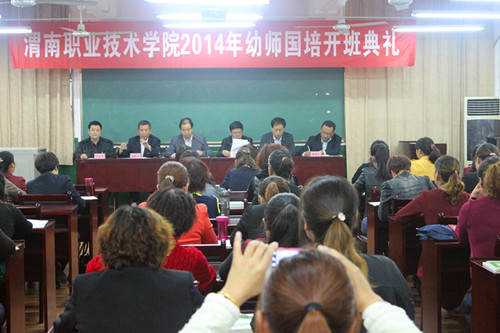我院承办的“幼师国培”(2014)——陕西省公(民)办幼儿园园长高级研修班第二期开班典礼,于2014年10月11日上午10:30在jinnianhui今年会多媒体教室隆重举行。陕西省国培计划项目执行办公室项目部主任苏理,渭南市教育局副局长姚培实、柴新宏,学院院长助理王录军、项目首席专家孙光锋、jinnianhui今年会院长赵新平、jinnianhui今年会党总支书记雷建文,负责国培项目的有关工作人员和参训的全体幼儿园园长参加了开班典礼。