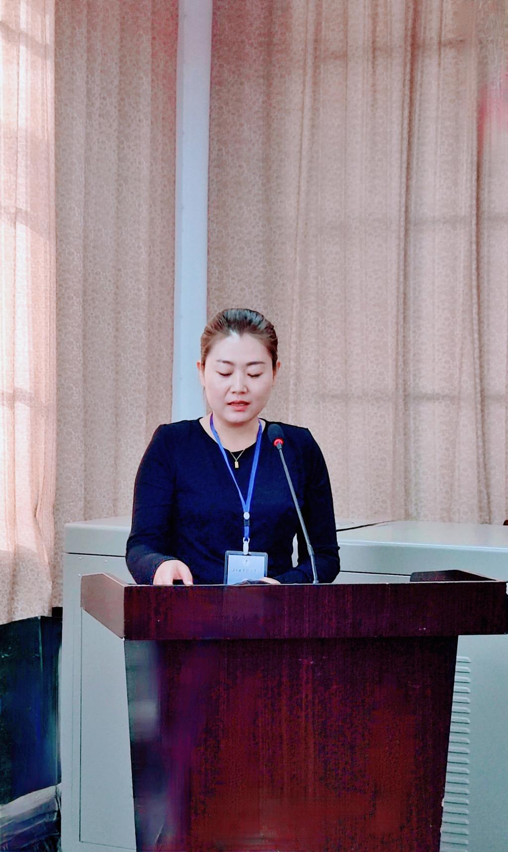 于晶茹介绍了项目实施方案及课程设计,马淑红宣读了培训纪律。来自蒲城县第四幼儿园的刘园代表参训学员作了表态发言。