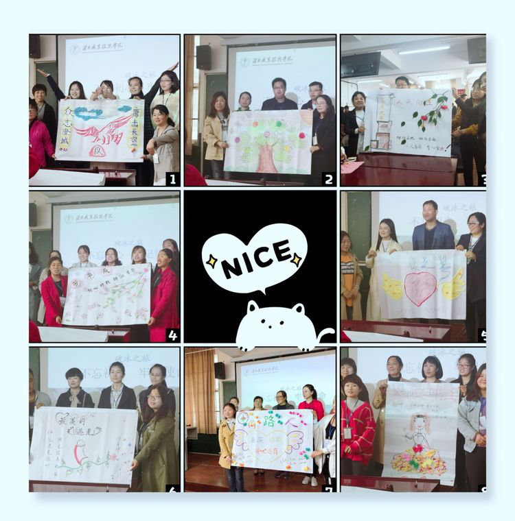 开班典礼后,由班主任段小娟老师组织开展《破冰之旅》,参训园长以地区为小组,为小组拟定口号,绘制小组徽章,各小组团结一致,合作完成小组任务。