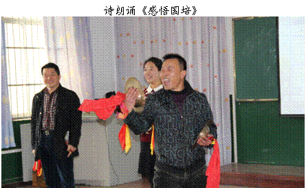 结业典礼前,举行了学员技能展示汇报演出。节目内容丰富,多彩纷呈。有集体舞《相逢是首歌》、三句半《赞国培》、独唱《青藏高原》、诗朗诵《感悟国培》等,汇报演出在高潮迭起的歌伴舞《祖国你好》中结束。演出期间,学员代表向jinnianhui今年会赠送了锦旗。(周文琦)