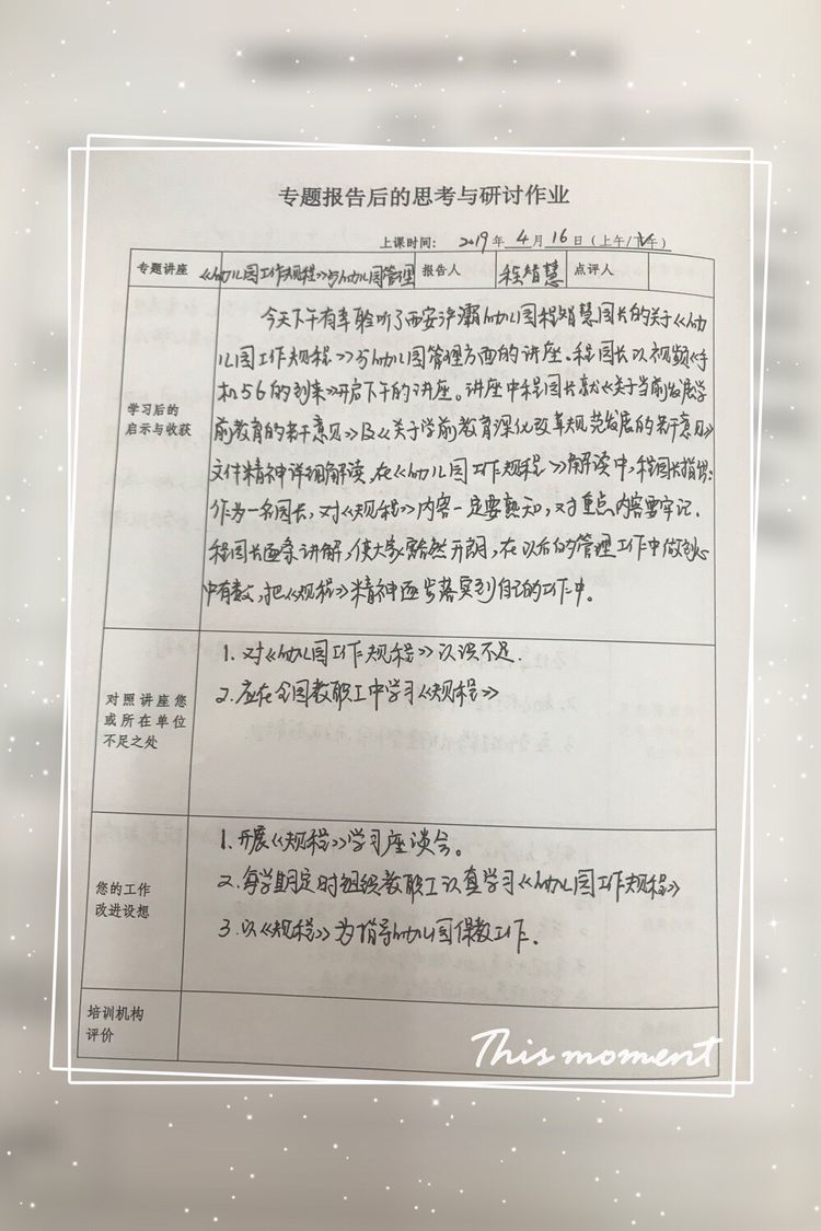 下午有幸聆听了西安浐灞幼儿园程智慧园长的关于《幼儿园工作规程》与幼儿园管理方面的知识讲座。