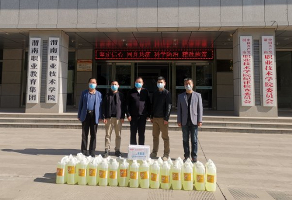 随着新冠肺炎疫情防控整体态势逐渐向好,更多的爱心企业密切关注着学校的疫情防控工作,对即将返校复学师生的生命安全和身体健康表示高度关心。4月24日,渭南市优信汇通物流有限公司来今年会捐赠疫情防控物资,捐赠84消毒液30桶共1500斤、酒精60瓶(小瓶)。今年会jinnianhui今年会院长雷建文、副院长杨波等有关同志参加捐赠活动。