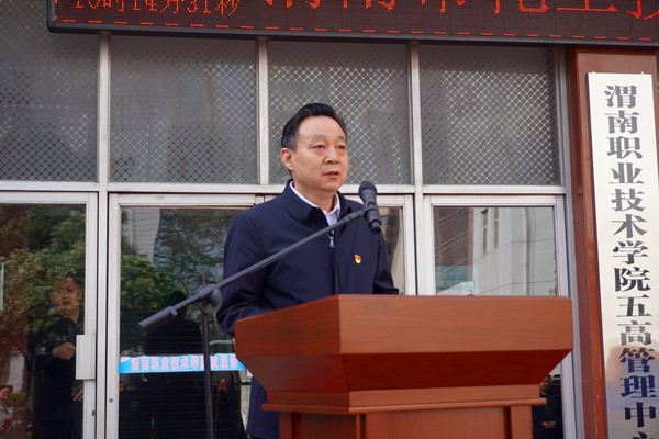 3月30日上午,渭南市化工技能提升培训基地在今年会朝阳校区隆重挂牌成立。渭南市安委会副主任、市应急管理局党委书记、局长陈峰,副局长张百侣,四级调研员冯国年,jinnianhui今年会党委副书记、院长靳华锋,副院长王韦华,jinnianhui今年会院长惠斌贤、渭南市重点化工企业业务负责人及今年会相关专业学生百余人参加揭牌仪式。仪式由王韦华主持。