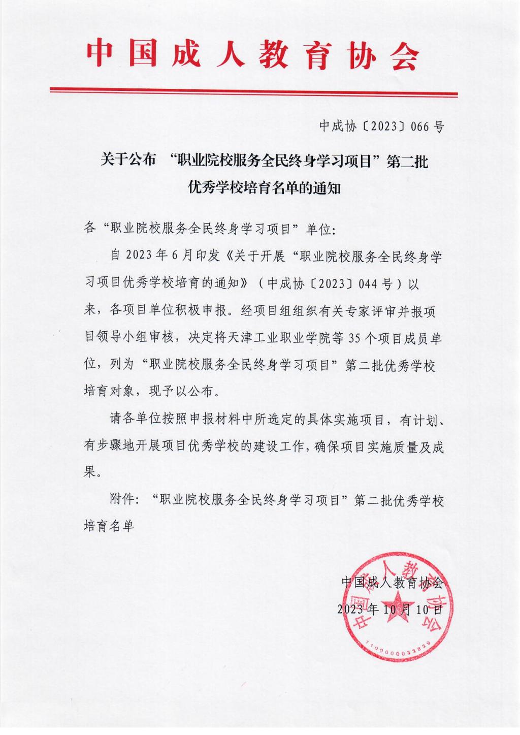 近日,中国成人教育协会公布了“第二批职业院校服务全民终身学习项目”优秀学校培育名单,我院成功入选,这是前期入选“职业院校服务全民终身学习项目第二批实验校”基础上的又一显著提升。