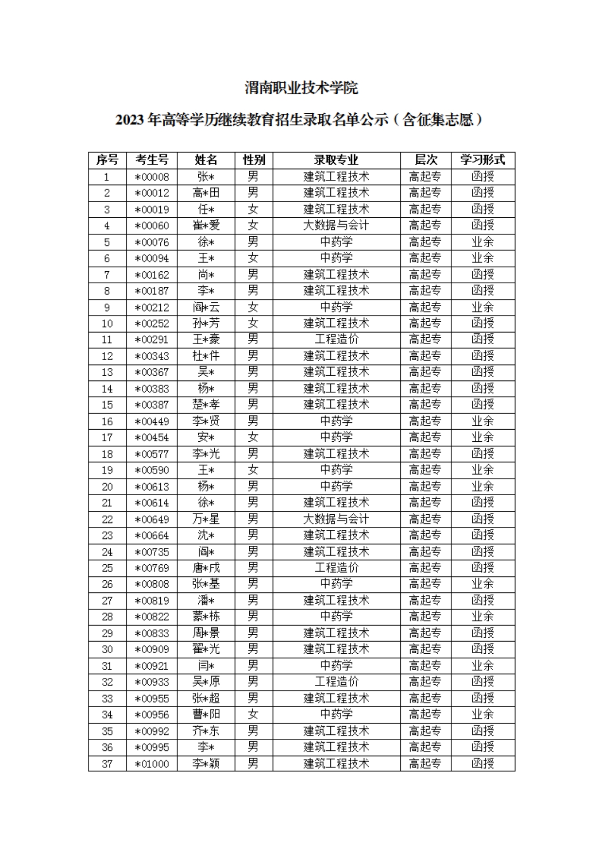 经陕西省教育考试院审核批准,现将今年会2023年高等学历继续教育招生(含征集志愿)录取名单公示如下,请考生于2024年2月20日前办理报到注册手续。
